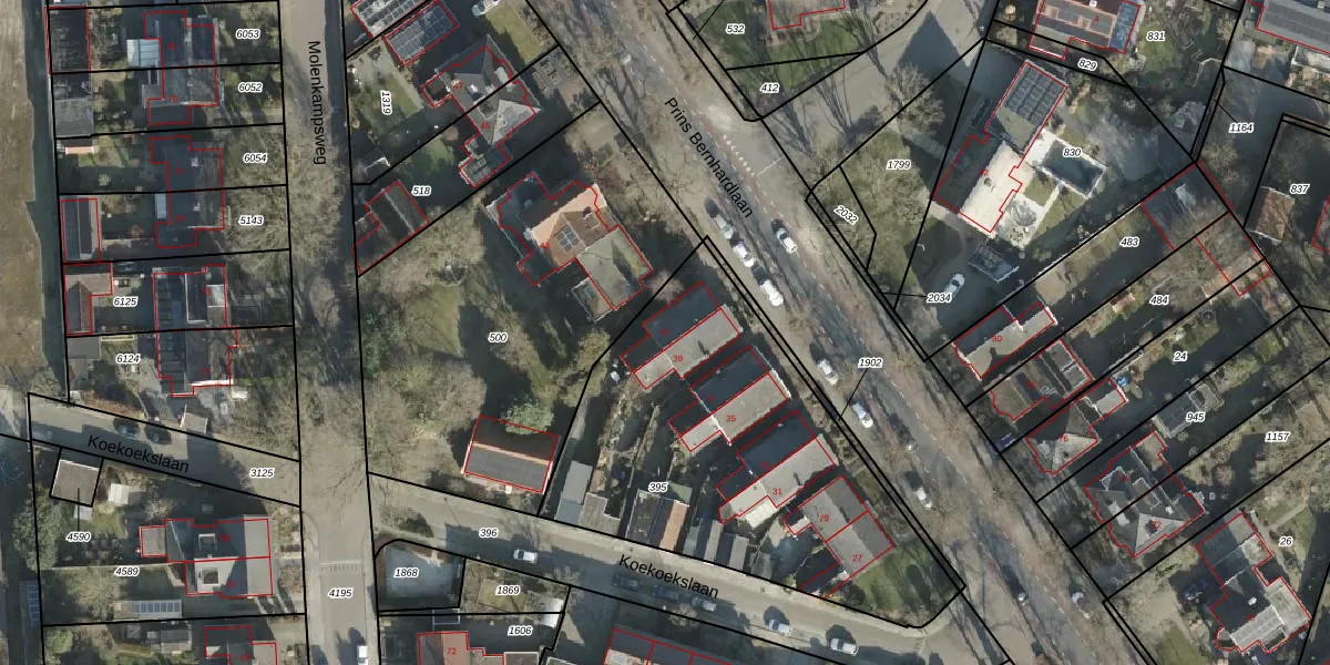 Het perceel waarop Prins Bernhardlaan 41 staat heeft een oppervlakte van 1733 m². Dit is een zeer groot perceel. De perceeloppervlakte wordt geregistreerd door het Kadaster. Gedetailleerde informatie over de maten van dit perceel kunt u vinden in het rapport Kadastrale kaart met maatvoering van Prins Bernhardlaan 41.