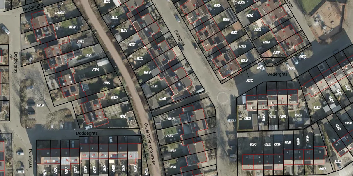Gebruik de zoekbalk of klik op een perceel voor informatie over de adressen binnen dit perceel.
