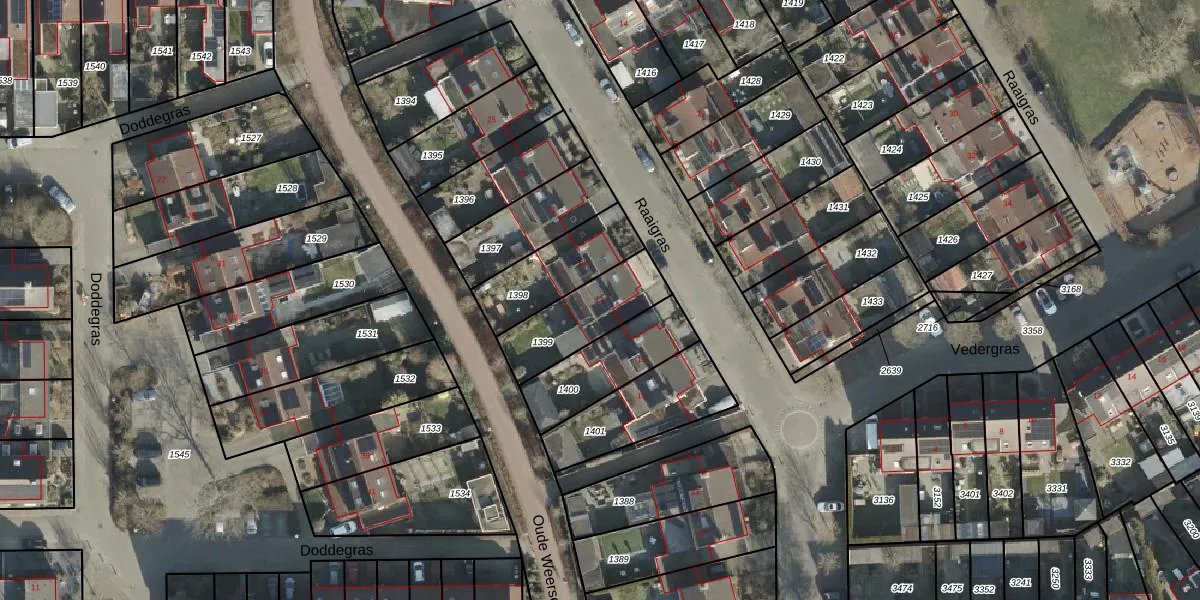 Het perceel waarop Raaigras 17 staat heeft een oppervlakte van 263 m². Dit is een middelgroot perceel. De perceeloppervlakte wordt geregistreerd door het Kadaster. Gedetailleerde informatie over de maten van dit perceel kunt u vinden in het rapport Kadastrale kaart met maatvoering van Raaigras 17.