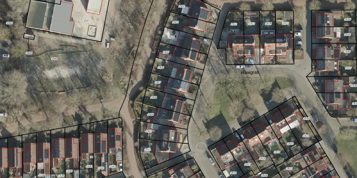 Raaigras 37 is gelegen op kadastraal perceel BNE00B1407. Deze kadastrale aanduiding is uniek en wordt gebruikt door het Kadaster om eigendomsrechten en andere zakelijke rechten vast te leggen. Het perceel maakt onderdeel uit van de kadastrale gemeente Borne.