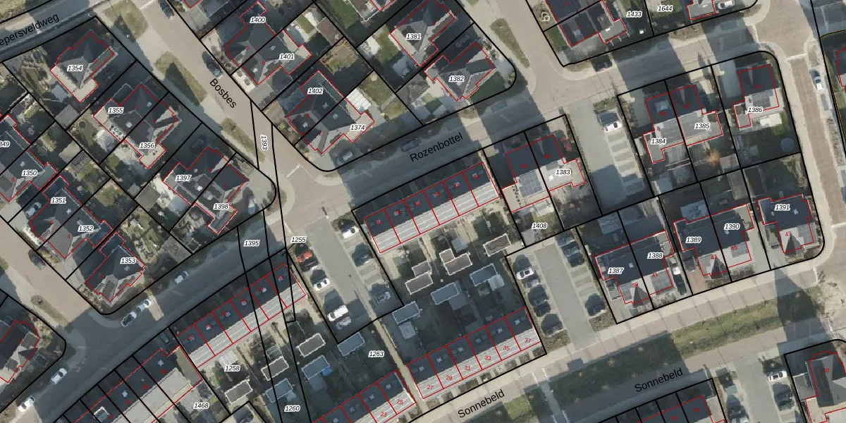 Het perceel waarop Rozenbottel 38 staat heeft een oppervlakte van 2440 m². Dit is een zeer groot perceel. De perceeloppervlakte wordt geregistreerd door het Kadaster. Gedetailleerde informatie over de maten van dit perceel kunt u vinden in het rapport Kadastrale kaart met maatvoering van Rozenbottel 38.