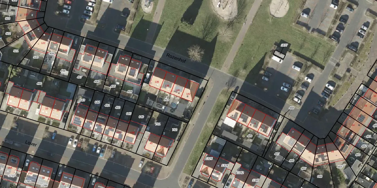 Het perceel waarop Rozenhof 142 staat heeft een oppervlakte van 774 m². Dit is een groot perceel. De perceeloppervlakte wordt geregistreerd door het Kadaster. Gedetailleerde informatie over de maten van dit perceel kunt u vinden in het rapport Kadastrale kaart met maatvoering van Rozenhof 142.