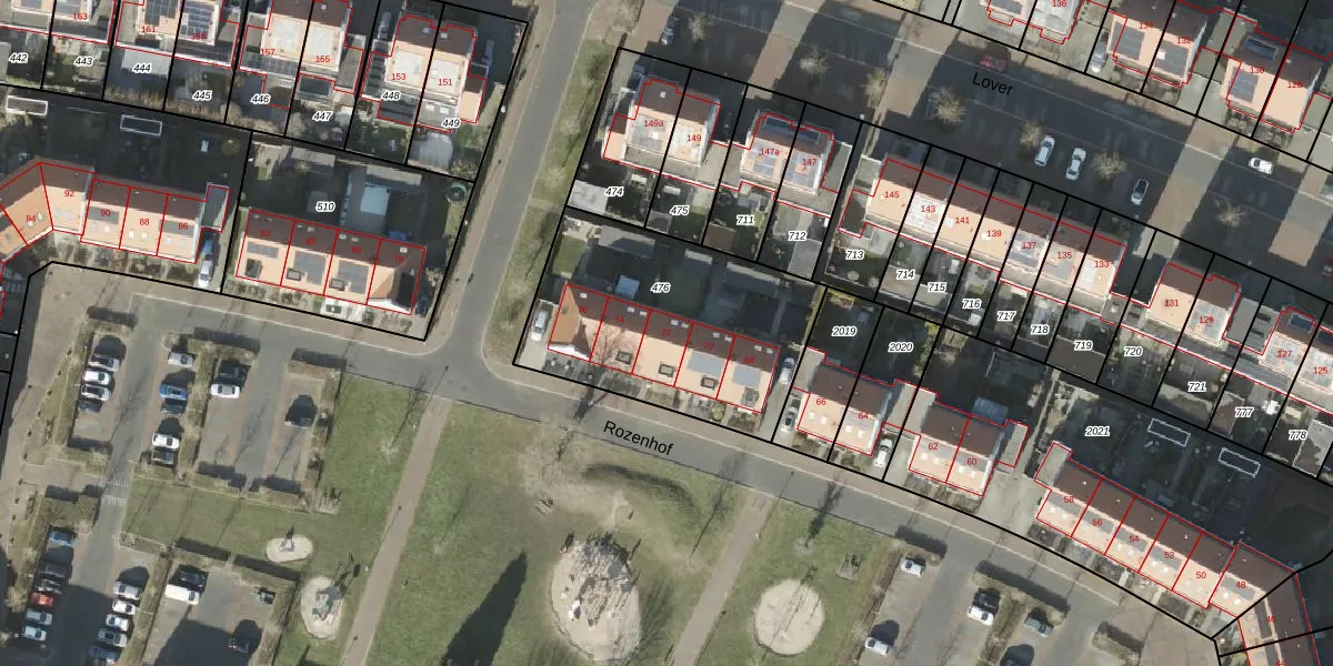 Het perceel waarop Rozenhof 72 staat heeft een oppervlakte van 1020 m². Dit is een zeer groot perceel. De perceeloppervlakte wordt geregistreerd door het Kadaster. Gedetailleerde informatie over de maten van dit perceel kunt u vinden in het rapport Kadastrale kaart met maatvoering van Rozenhof 72.