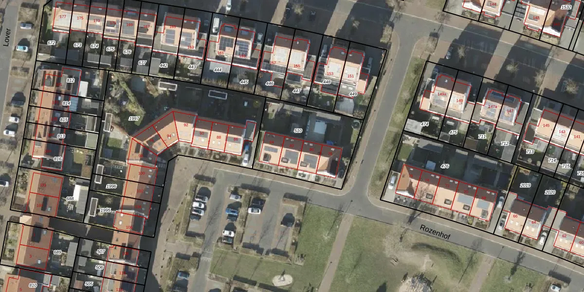 Rozenhof 82 is gelegen op kadastraal perceel BNE00L510. Deze kadastrale aanduiding is uniek en wordt gebruikt door het Kadaster om eigendomsrechten en andere zakelijke rechten vast te leggen. Het perceel maakt onderdeel uit van de kadastrale gemeente Borne.