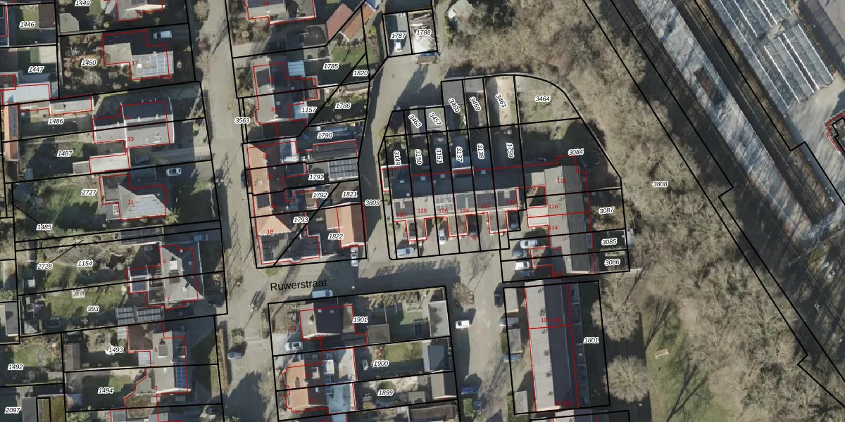 Ruwerstraat 128 is gelegen op kadastraal perceel BNE00K3150. Deze kadastrale aanduiding is uniek en wordt gebruikt door het Kadaster om eigendomsrechten en andere zakelijke rechten vast te leggen. Het perceel maakt onderdeel uit van de kadastrale gemeente Borne.