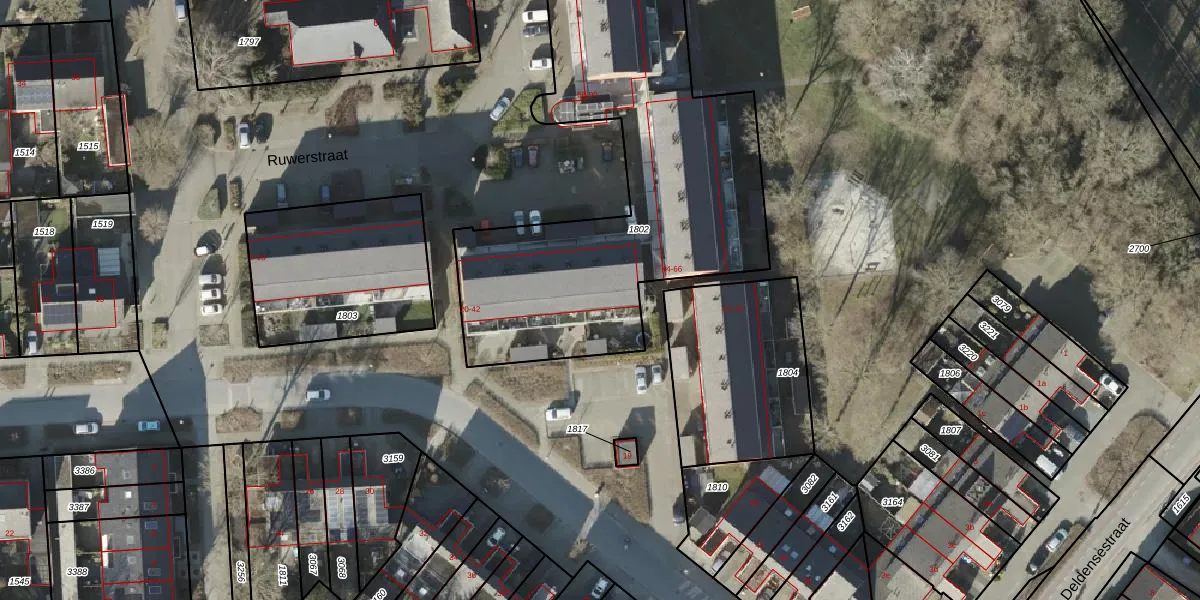 Het perceel waarop Ruwerstraat 34 staat heeft een oppervlakte van 2132 m². Dit is een zeer groot perceel. De perceeloppervlakte wordt geregistreerd door het Kadaster. Gedetailleerde informatie over de maten van dit perceel kunt u vinden in het rapport Kadastrale kaart met maatvoering van Ruwerstraat 34.