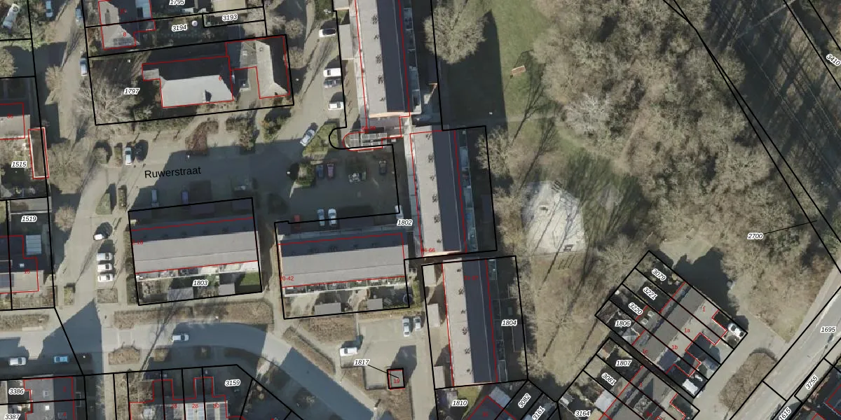 Het perceel waarop Ruwerstraat 48 staat heeft een oppervlakte van 2132 m². Dit is een zeer groot perceel. De perceeloppervlakte wordt geregistreerd door het Kadaster. Gedetailleerde informatie over de maten van dit perceel kunt u vinden in het rapport Kadastrale kaart met maatvoering van Ruwerstraat 48.