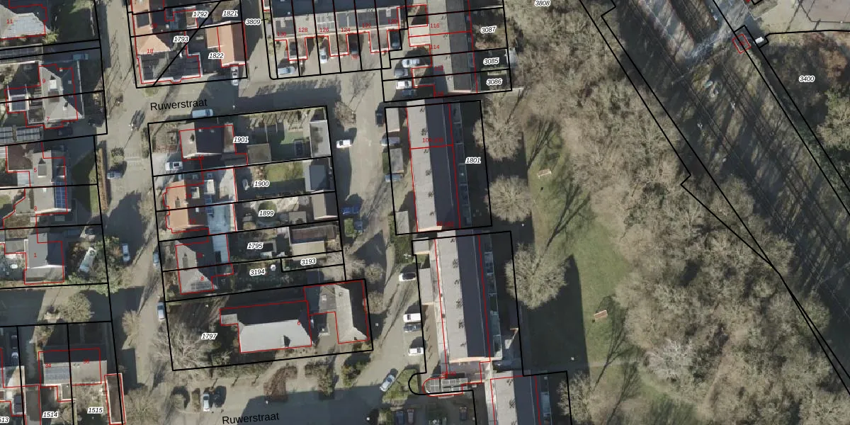 Het perceel waarop Ruwerstraat 94 staat heeft een oppervlakte van 668 m². Dit is een groot perceel. De perceeloppervlakte wordt geregistreerd door het Kadaster. Gedetailleerde informatie over de maten van dit perceel kunt u vinden in het rapport Kadastrale kaart met maatvoering van Ruwerstraat 94.