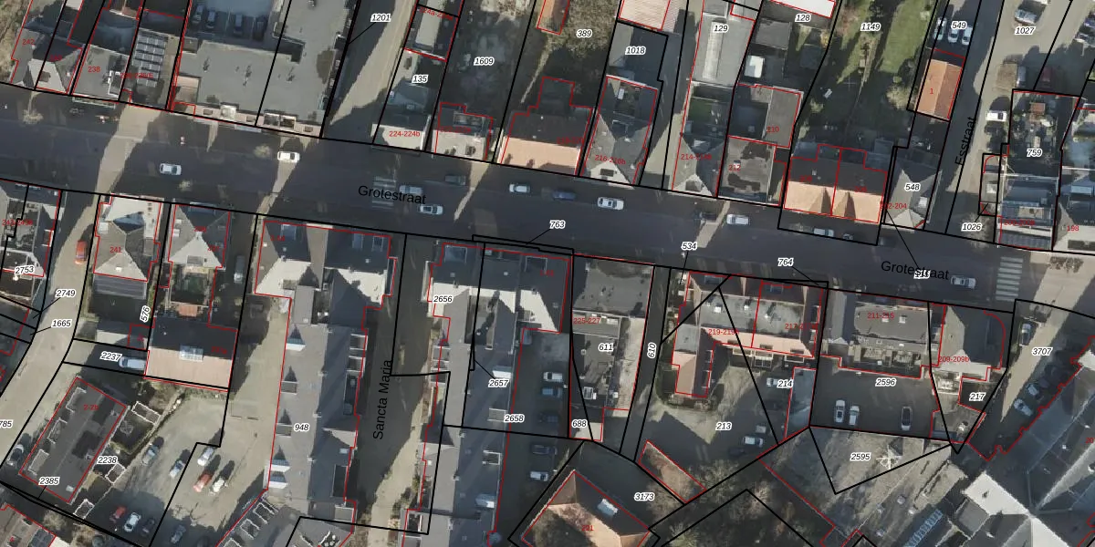Het perceel waarop Sancta Maria 1 staat heeft een oppervlakte van 592 m². Dit is een groot perceel. De perceeloppervlakte wordt geregistreerd door het Kadaster. Gedetailleerde informatie over de maten van dit perceel kunt u vinden in het rapport Kadastrale kaart met maatvoering van Sancta Maria 1.