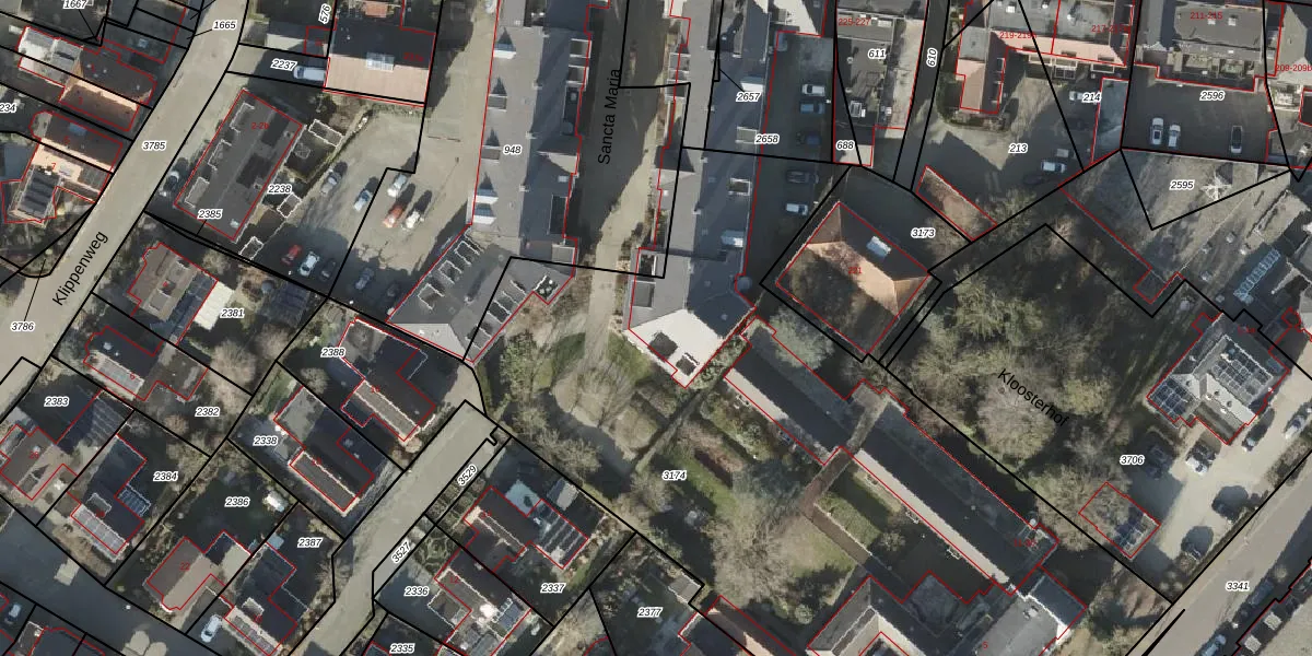 Het perceel waarop Sancta Maria 19 staat heeft een oppervlakte van 4680 m². Dit is een zeer groot perceel. De perceeloppervlakte wordt geregistreerd door het Kadaster. Gedetailleerde informatie over de maten van dit perceel kunt u vinden in het rapport Kadastrale kaart met maatvoering van Sancta Maria 19.