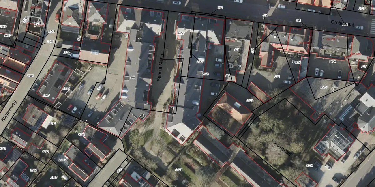 Het perceel waarop Sancta Maria 35 staat heeft een oppervlakte van 4680 m². Dit is een zeer groot perceel. De perceeloppervlakte wordt geregistreerd door het Kadaster. Gedetailleerde informatie over de maten van dit perceel kunt u vinden in het rapport Kadastrale kaart met maatvoering van Sancta Maria 35.