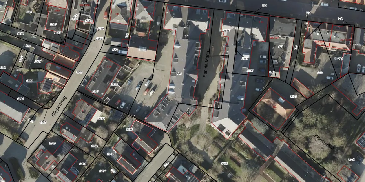 Het perceel waarop Sancta Maria 36 staat heeft een oppervlakte van 2244 m². Dit is een zeer groot perceel. De perceeloppervlakte wordt geregistreerd door het Kadaster. Gedetailleerde informatie over de maten van dit perceel kunt u vinden in het rapport Kadastrale kaart met maatvoering van Sancta Maria 36.