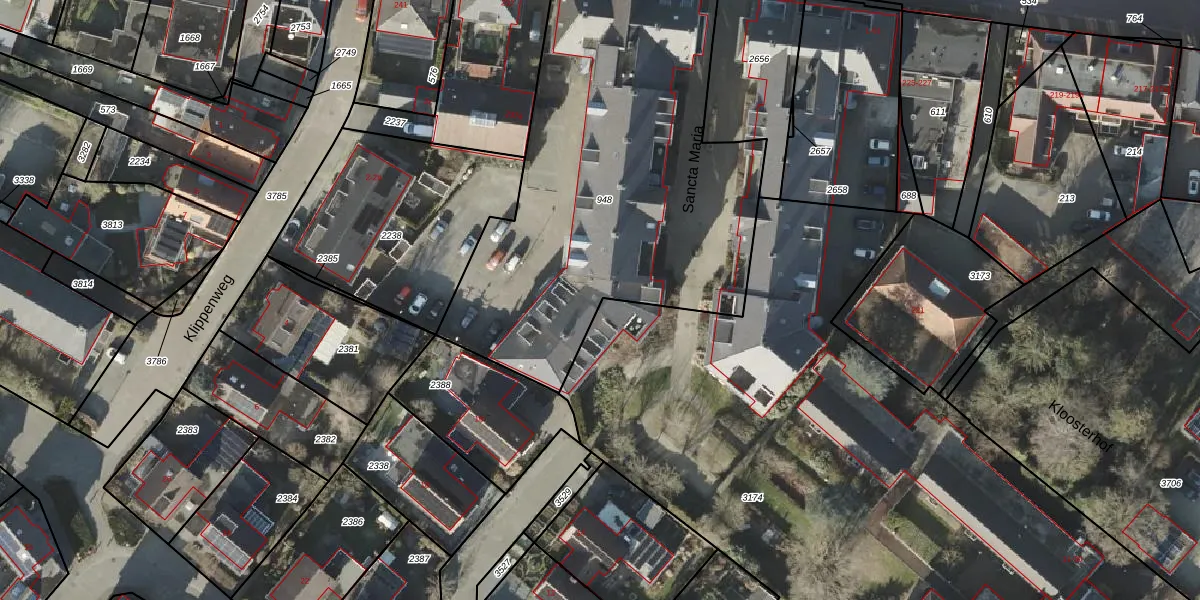 Het perceel waarop Sancta Maria 38 staat heeft een oppervlakte van 2244 m². Dit is een zeer groot perceel. De perceeloppervlakte wordt geregistreerd door het Kadaster. Gedetailleerde informatie over de maten van dit perceel kunt u vinden in het rapport Kadastrale kaart met maatvoering van Sancta Maria 38.