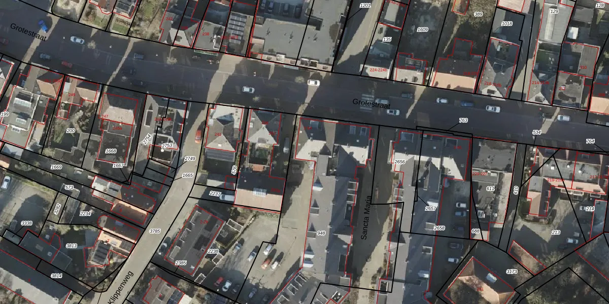 Het perceel waarop Sancta Maria 42 staat heeft een oppervlakte van 2244 m². Dit is een zeer groot perceel. De perceeloppervlakte wordt geregistreerd door het Kadaster. Gedetailleerde informatie over de maten van dit perceel kunt u vinden in het rapport Kadastrale kaart met maatvoering van Sancta Maria 42.
