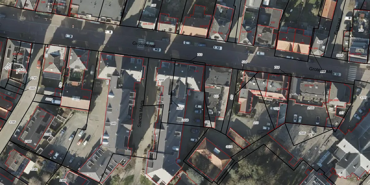Het perceel waarop Sancta Maria 47 staat heeft een oppervlakte van 592 m². Dit is een groot perceel. De perceeloppervlakte wordt geregistreerd door het Kadaster. Gedetailleerde informatie over de maten van dit perceel kunt u vinden in het rapport Kadastrale kaart met maatvoering van Sancta Maria 47.