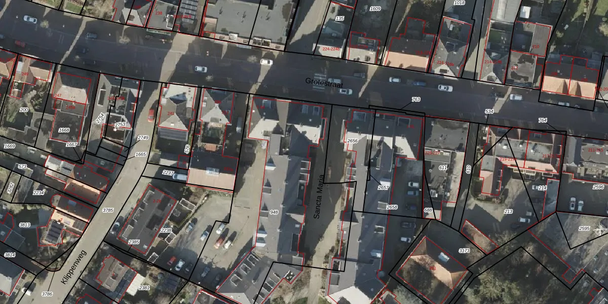 Het perceel waarop Sancta Maria 8 staat heeft een oppervlakte van 2244 m². Dit is een zeer groot perceel. De perceeloppervlakte wordt geregistreerd door het Kadaster. Gedetailleerde informatie over de maten van dit perceel kunt u vinden in het rapport Kadastrale kaart met maatvoering van Sancta Maria 8.