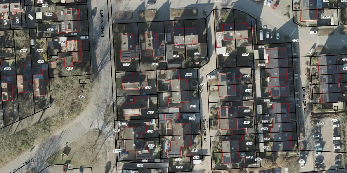 Het perceel waarop Satinetstraat 2 staat heeft een oppervlakte van 308 m². Dit is een groot perceel. De perceeloppervlakte wordt geregistreerd door het Kadaster. Gedetailleerde informatie over de maten van dit perceel kunt u vinden in het rapport Kadastrale kaart met maatvoering van Satinetstraat 2.