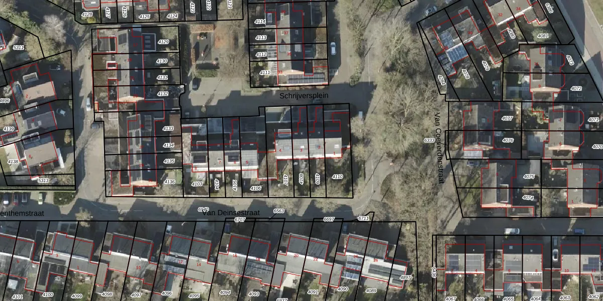 Schrijversplein 3 is gelegen op kadastraal perceel BNE00E4108. Deze kadastrale aanduiding is uniek en wordt gebruikt door het Kadaster om eigendomsrechten en andere zakelijke rechten vast te leggen. Het perceel maakt onderdeel uit van de kadastrale gemeente Borne.
