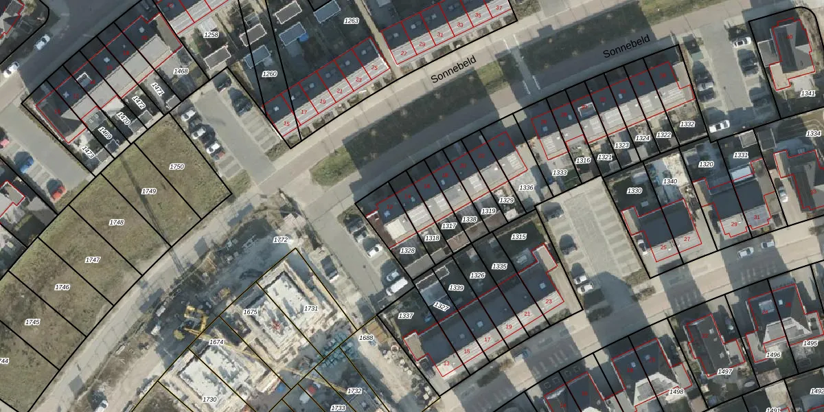 Het perceel waarop Sonnebeld 14 staat heeft een oppervlakte van 119 m². Dit is een middelgroot perceel. De perceeloppervlakte wordt geregistreerd door het Kadaster. Gedetailleerde informatie over de maten van dit perceel kunt u vinden in het rapport Kadastrale kaart met maatvoering van Sonnebeld 14.