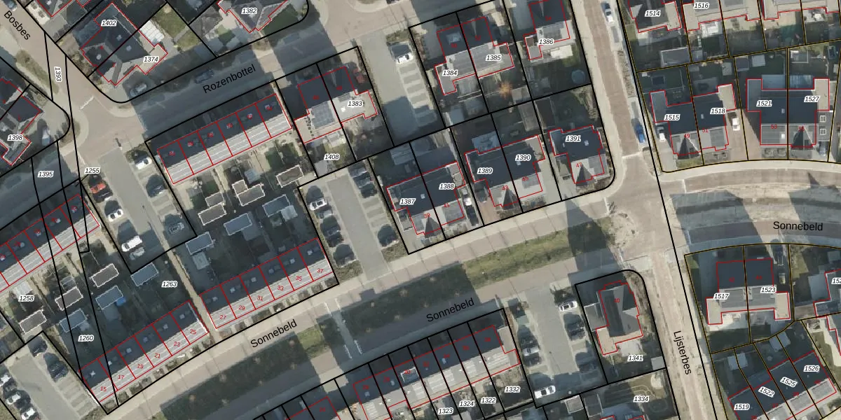 Sonnebeld 39 is gelegen op kadastraal perceel BNE00C1387. Deze kadastrale aanduiding is uniek en wordt gebruikt door het Kadaster om eigendomsrechten en andere zakelijke rechten vast te leggen. Het perceel maakt onderdeel uit van de kadastrale gemeente Borne.