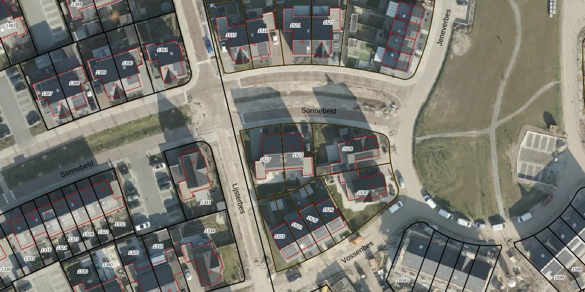 Het perceel waarop Sonnebeld 44 staat heeft een oppervlakte van 233 m². Dit is een middelgroot perceel. De perceeloppervlakte wordt geregistreerd door het Kadaster. Gedetailleerde informatie over de maten van dit perceel kunt u vinden in het rapport Kadastrale kaart met maatvoering van Sonnebeld 44.