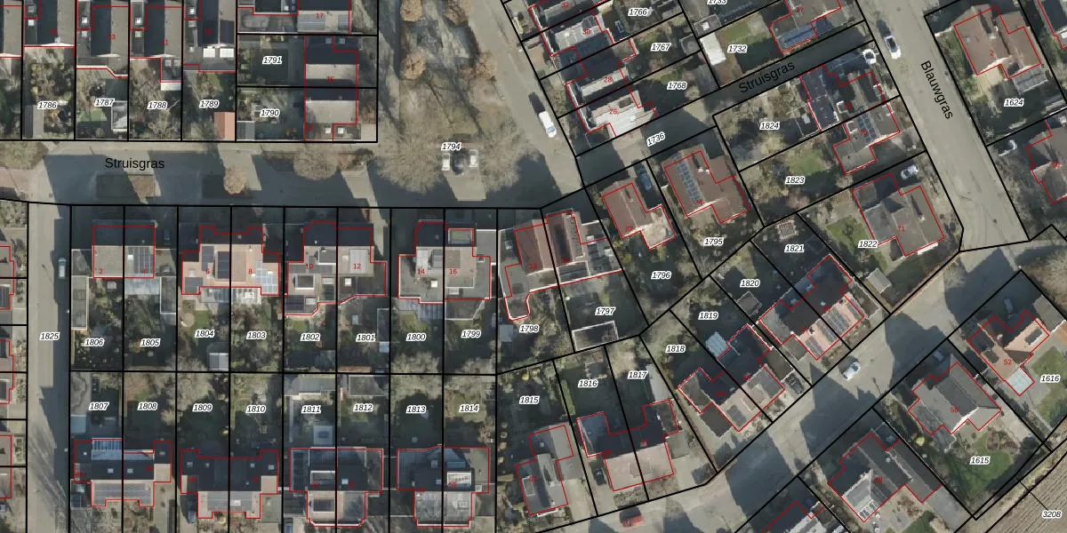 Het perceel waarop Struisgras 18 staat heeft een oppervlakte van 338 m². Dit is een groot perceel. De perceeloppervlakte wordt geregistreerd door het Kadaster. Gedetailleerde informatie over de maten van dit perceel kunt u vinden in het rapport Kadastrale kaart met maatvoering van Struisgras 18.