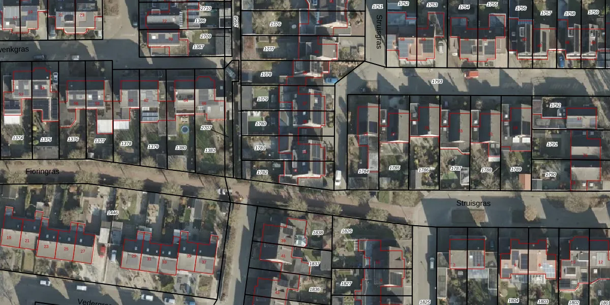 Het perceel waarop Struisgras 33 staat heeft een oppervlakte van 249 m². Dit is een middelgroot perceel. De perceeloppervlakte wordt geregistreerd door het Kadaster. Gedetailleerde informatie over de maten van dit perceel kunt u vinden in het rapport Kadastrale kaart met maatvoering van Struisgras 33.