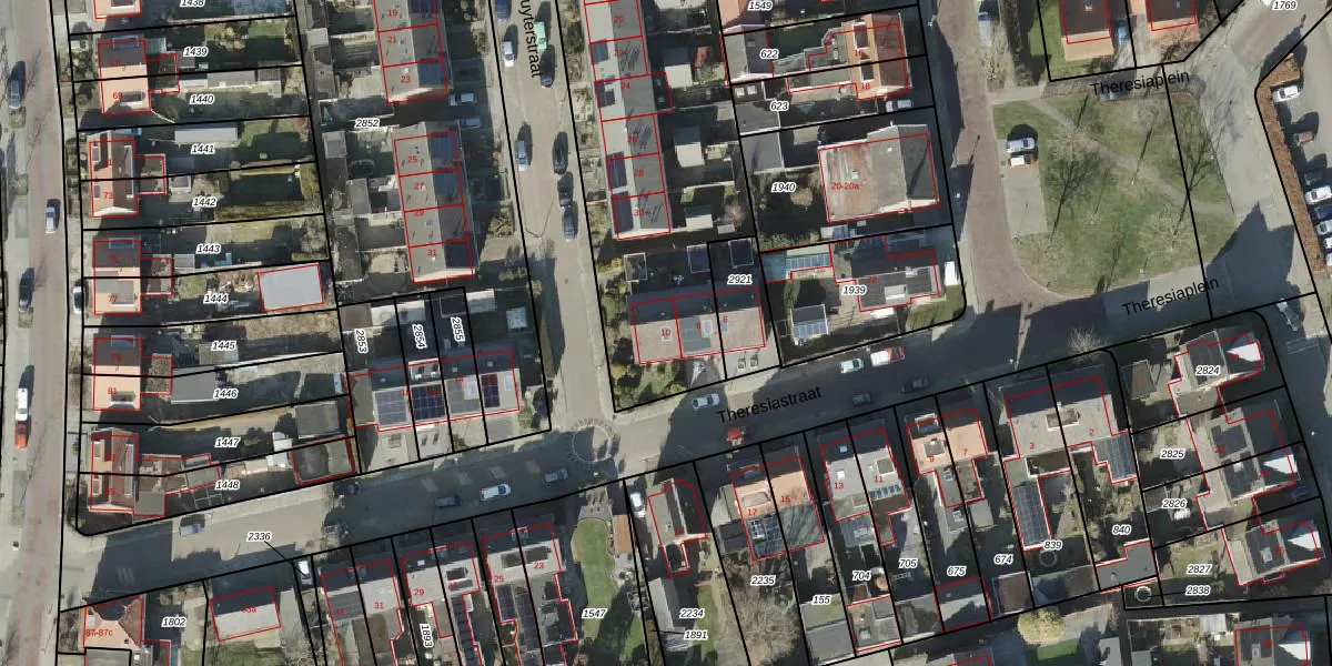 Het perceel waarop Theresiastraat 10 staat heeft een oppervlakte van 2746 m². Dit is een zeer groot perceel. De perceeloppervlakte wordt geregistreerd door het Kadaster. Gedetailleerde informatie over de maten van dit perceel kunt u vinden in het rapport Kadastrale kaart met maatvoering van Theresiastraat 10.