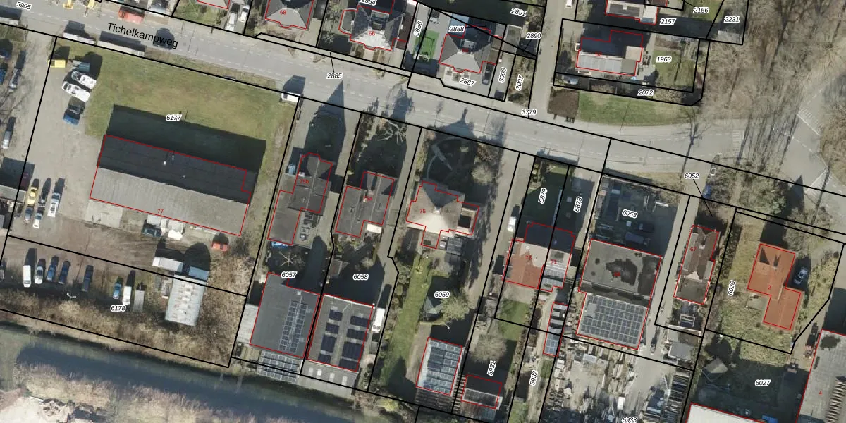 Tichelkampweg 75 is gelegen op kadastraal perceel BNE00D6059. Deze kadastrale aanduiding is uniek en wordt gebruikt door het Kadaster om eigendomsrechten en andere zakelijke rechten vast te leggen. Het perceel maakt onderdeel uit van de kadastrale gemeente Borne.