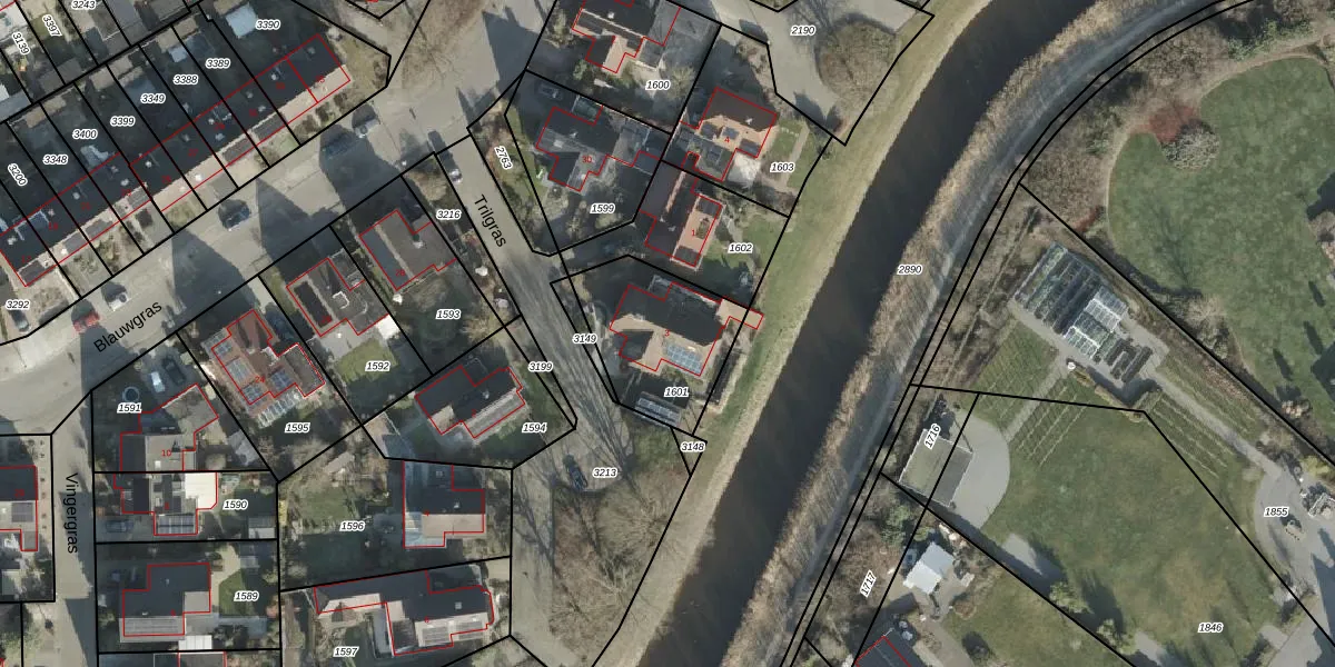 Het perceel waarop Trilgras 3 staat heeft een oppervlakte van 427 m². Dit is een groot perceel. De perceeloppervlakte wordt geregistreerd door het Kadaster. Gedetailleerde informatie over de maten van dit perceel kunt u vinden in het rapport Kadastrale kaart met maatvoering van Trilgras 3.