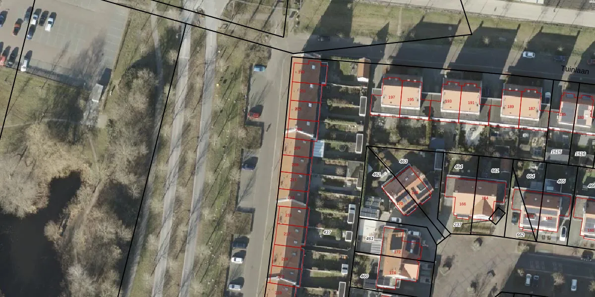 Tuinlaan 207 is gelegen op kadastraal perceel BNE00L437. Deze kadastrale aanduiding is uniek en wordt gebruikt door het Kadaster om eigendomsrechten en andere zakelijke rechten vast te leggen. Het perceel maakt onderdeel uit van de kadastrale gemeente Borne.