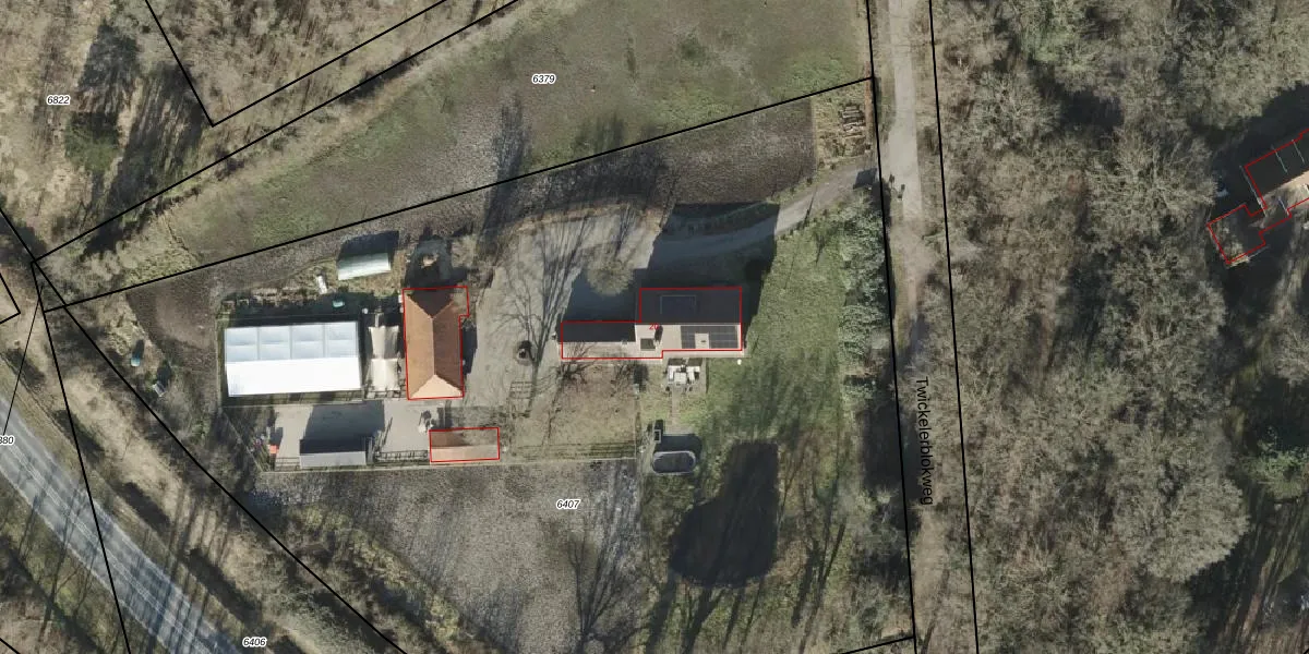 Het perceel waarop Twickelerblokweg 20 staat heeft een oppervlakte van 8110 m². Dit is een zeer groot perceel. De perceeloppervlakte wordt geregistreerd door het Kadaster. Gedetailleerde informatie over de maten van dit perceel kunt u vinden in het rapport Kadastrale kaart met maatvoering van Twickelerblokweg 20.