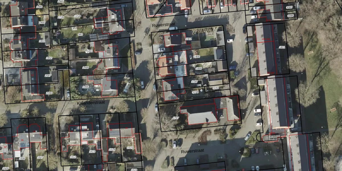 Gebruik de zoekbalk of klik op een perceel voor informatie over de adressen binnen dit perceel.