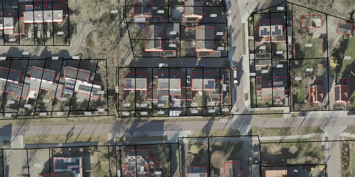 Gebruik de zoekbalk of klik op een perceel voor informatie over de adressen binnen dit perceel.