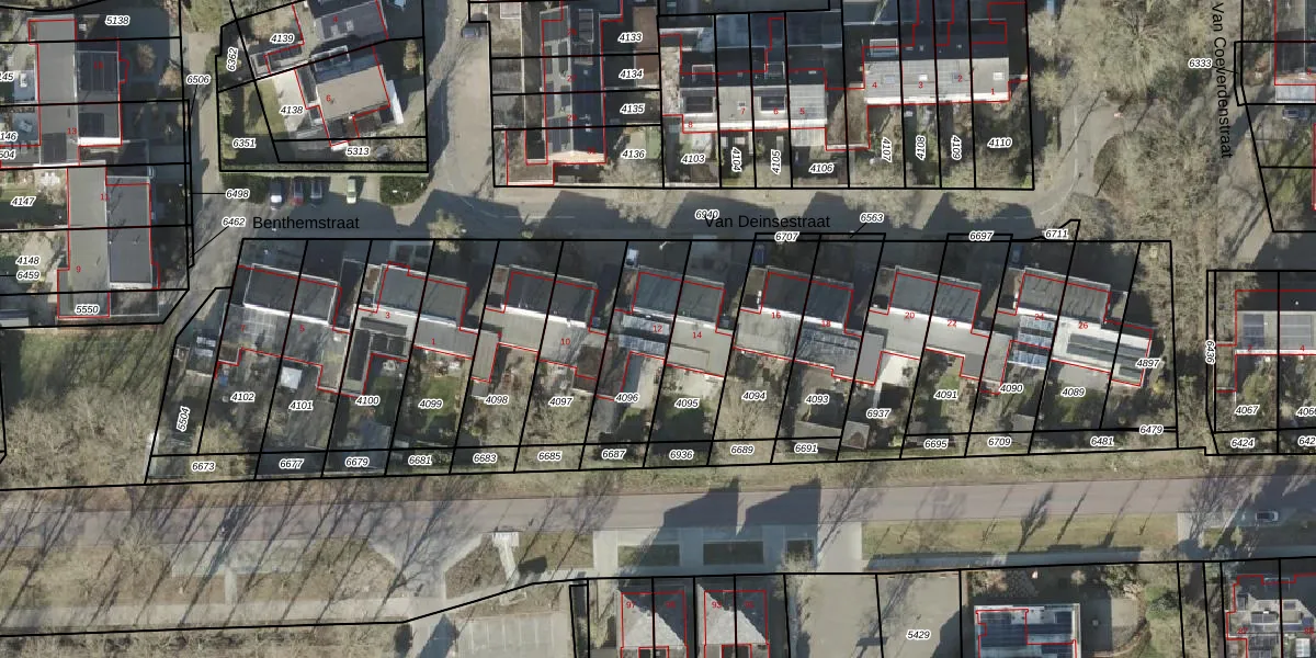 Van Deinsestraat 12 is gelegen op kadastraal perceel BNE00E4096. Deze kadastrale aanduiding is uniek en wordt gebruikt door het Kadaster om eigendomsrechten en andere zakelijke rechten vast te leggen. Het perceel maakt onderdeel uit van de kadastrale gemeente Borne.
