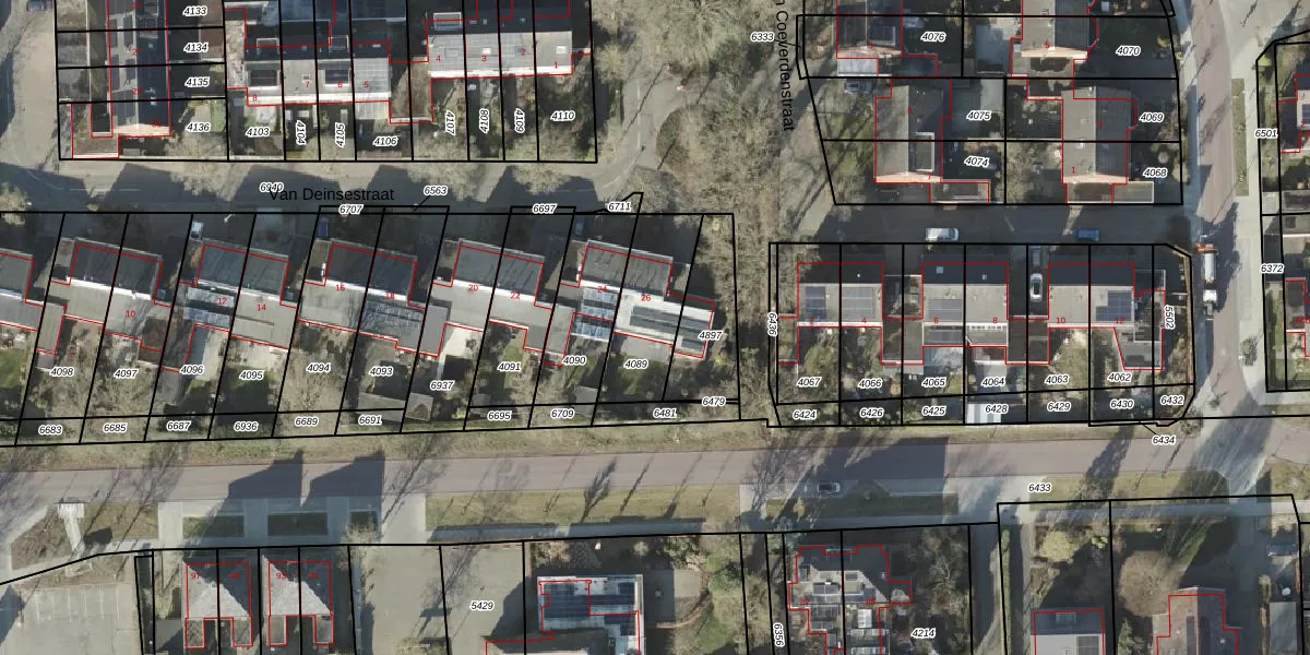 Gebruik de zoekbalk of klik op een perceel voor informatie over de adressen binnen dit perceel.