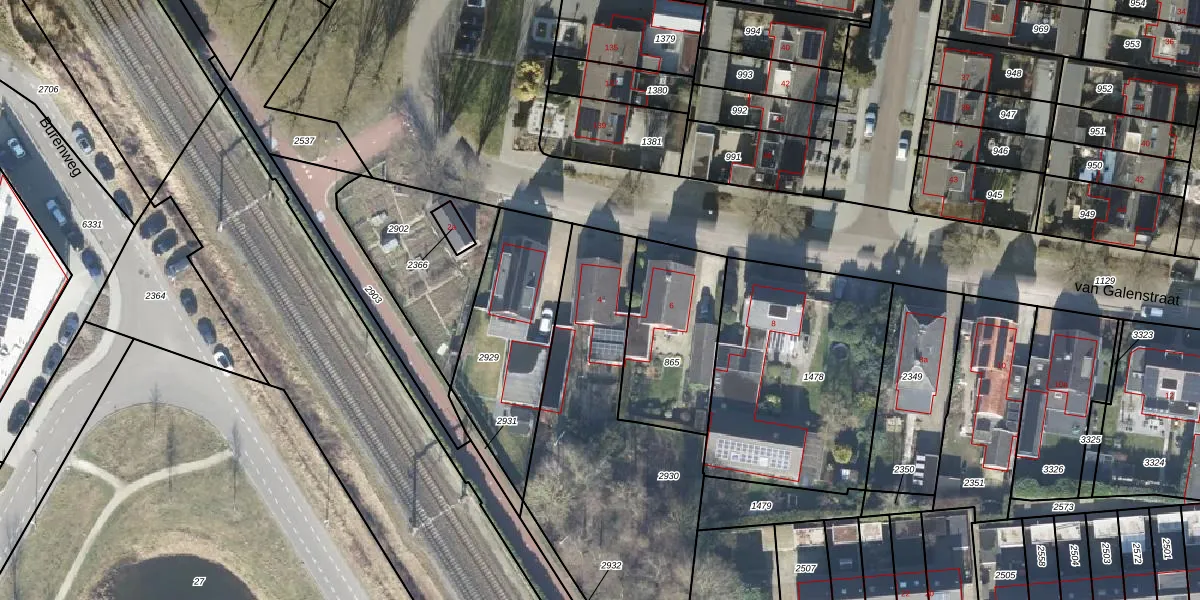 Het perceel waarop van Galenstraat 4 staat heeft een oppervlakte van 1326 m². Dit is een zeer groot perceel. De perceeloppervlakte wordt geregistreerd door het Kadaster. Gedetailleerde informatie over de maten van dit perceel kunt u vinden in het rapport Kadastrale kaart met maatvoering van van Galenstraat 4.