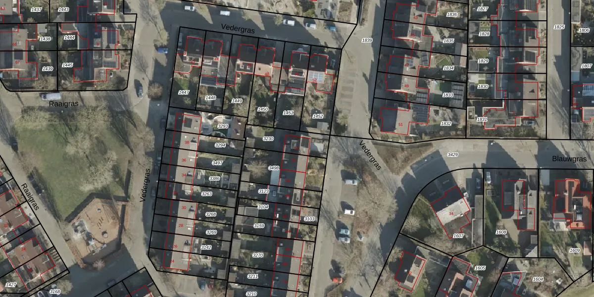 Het perceel waarop Vedergras 54 staat heeft een oppervlakte van 221 m². Dit is een middelgroot perceel. De perceeloppervlakte wordt geregistreerd door het Kadaster. Gedetailleerde informatie over de maten van dit perceel kunt u vinden in het rapport Kadastrale kaart met maatvoering van Vedergras 54.