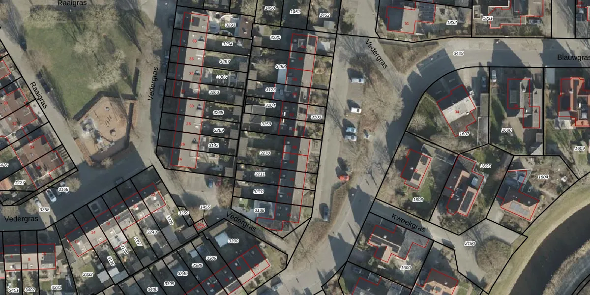 Het perceel waarop Vedergras 66 staat heeft een oppervlakte van 513 m². Dit is een groot perceel. De perceeloppervlakte wordt geregistreerd door het Kadaster. Gedetailleerde informatie over de maten van dit perceel kunt u vinden in het rapport Kadastrale kaart met maatvoering van Vedergras 66.