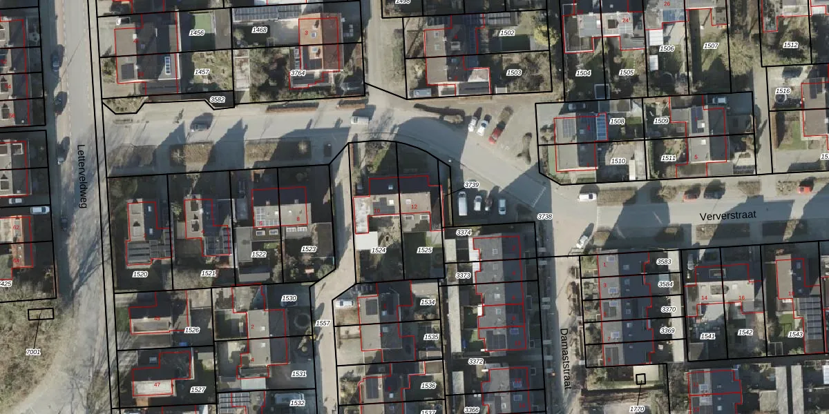 Het perceel waarop Ververstraat 12 staat heeft een oppervlakte van 310 m². Dit is een groot perceel. De perceeloppervlakte wordt geregistreerd door het Kadaster. Gedetailleerde informatie over de maten van dit perceel kunt u vinden in het rapport Kadastrale kaart met maatvoering van Ververstraat 12.