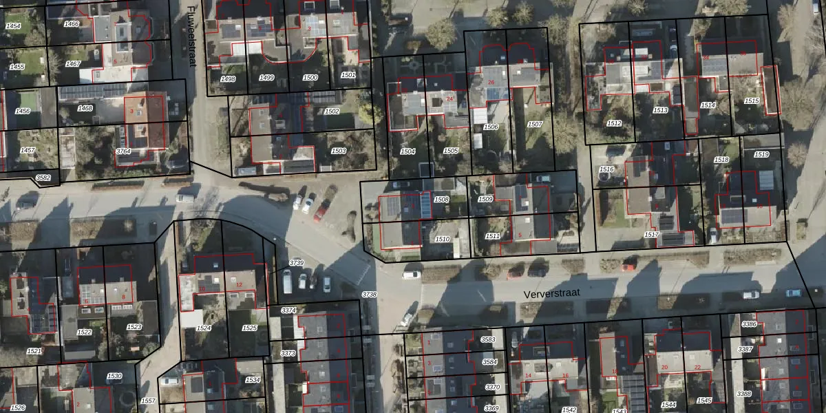 Gebruik de zoekbalk of klik op een perceel voor informatie over de adressen binnen dit perceel.