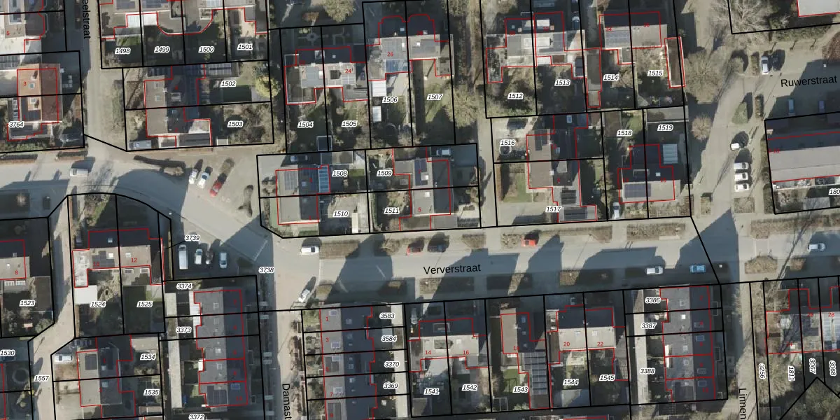 Gebruik de zoekbalk of klik op een perceel voor informatie over de adressen binnen dit perceel.