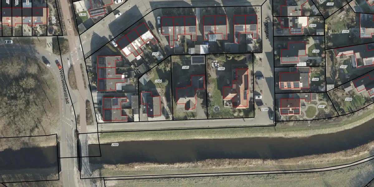 Gebruik de zoekbalk of klik op een perceel voor informatie over de adressen binnen dit perceel.