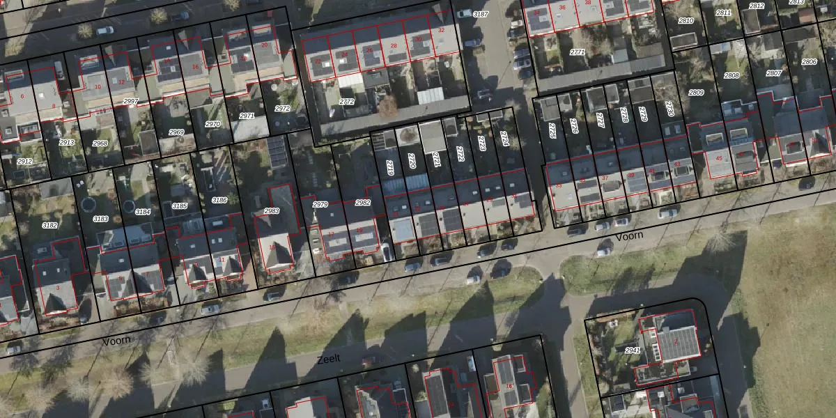 Het perceel waarop Voorn 23 staat heeft een oppervlakte van 180 m². Dit is een middelgroot perceel. De perceeloppervlakte wordt geregistreerd door het Kadaster. Gedetailleerde informatie over de maten van dit perceel kunt u vinden in het rapport Kadastrale kaart met maatvoering van Voorn 23.
