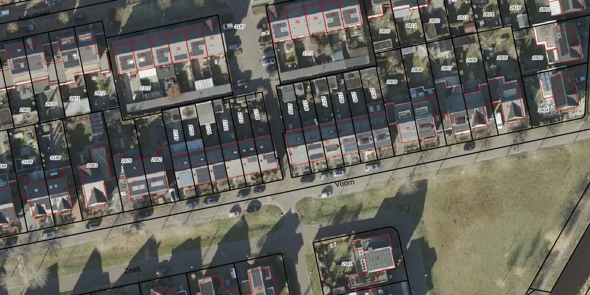 Het perceel waarop Voorn 33 staat heeft een oppervlakte van 200 m². Dit is een middelgroot perceel. De perceeloppervlakte wordt geregistreerd door het Kadaster. Gedetailleerde informatie over de maten van dit perceel kunt u vinden in het rapport Kadastrale kaart met maatvoering van Voorn 33.