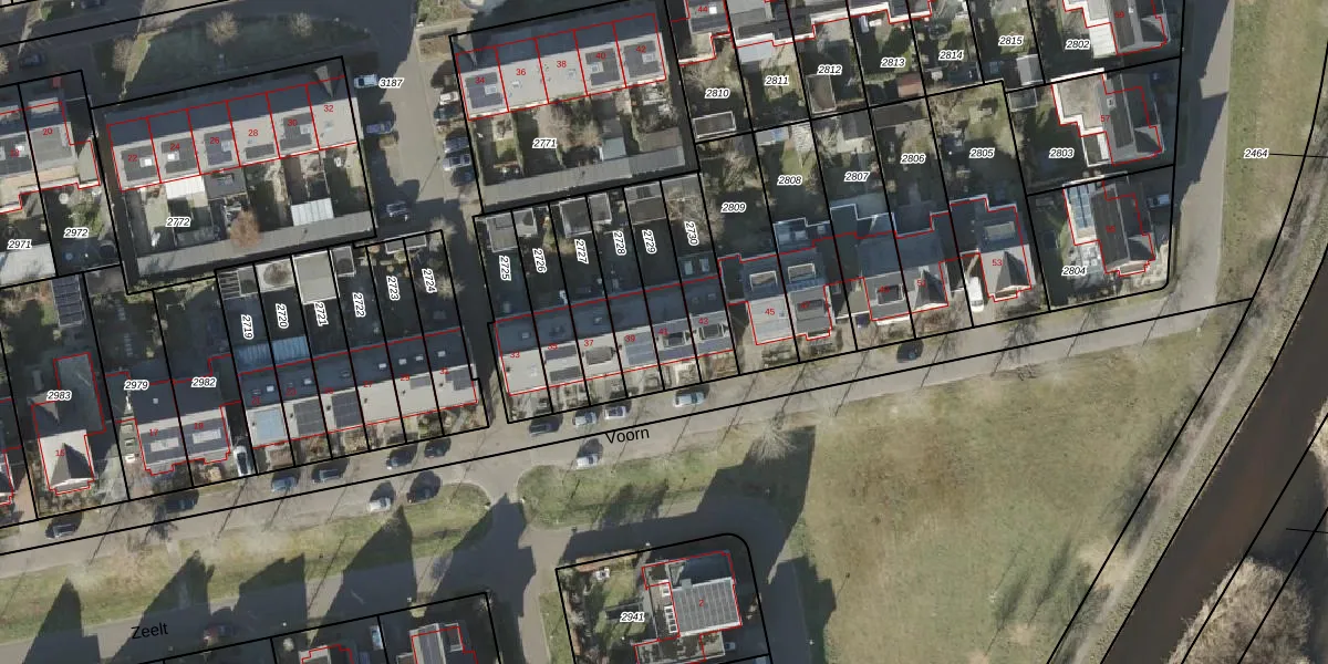 Het perceel waarop Voorn 41 staat heeft een oppervlakte van 180 m². Dit is een middelgroot perceel. De perceeloppervlakte wordt geregistreerd door het Kadaster. Gedetailleerde informatie over de maten van dit perceel kunt u vinden in het rapport Kadastrale kaart met maatvoering van Voorn 41.