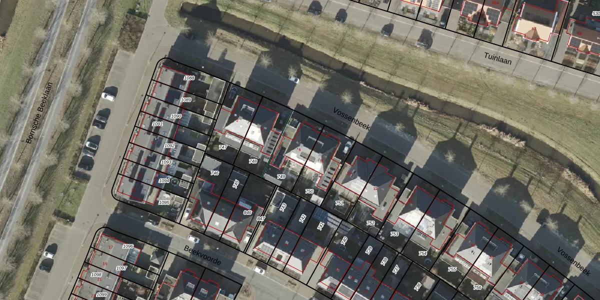Vossenbeek 6 is gelegen op kadastraal perceel BNE00L749. Deze kadastrale aanduiding is uniek en wordt gebruikt door het Kadaster om eigendomsrechten en andere zakelijke rechten vast te leggen. Het perceel maakt onderdeel uit van de kadastrale gemeente Borne.