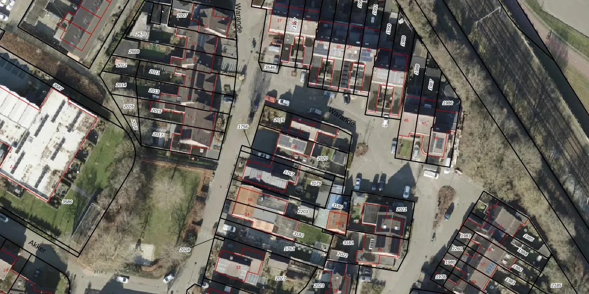 Gebruik de zoekbalk of klik op een perceel voor informatie over de adressen binnen dit perceel.