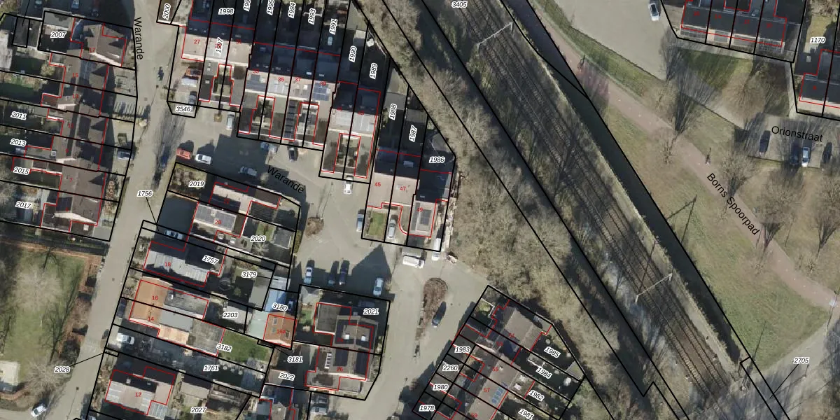Warande 49 is gelegen op kadastraal perceel BNE00K1986. Deze kadastrale aanduiding is uniek en wordt gebruikt door het Kadaster om eigendomsrechten en andere zakelijke rechten vast te leggen. Het perceel maakt onderdeel uit van de kadastrale gemeente Borne.