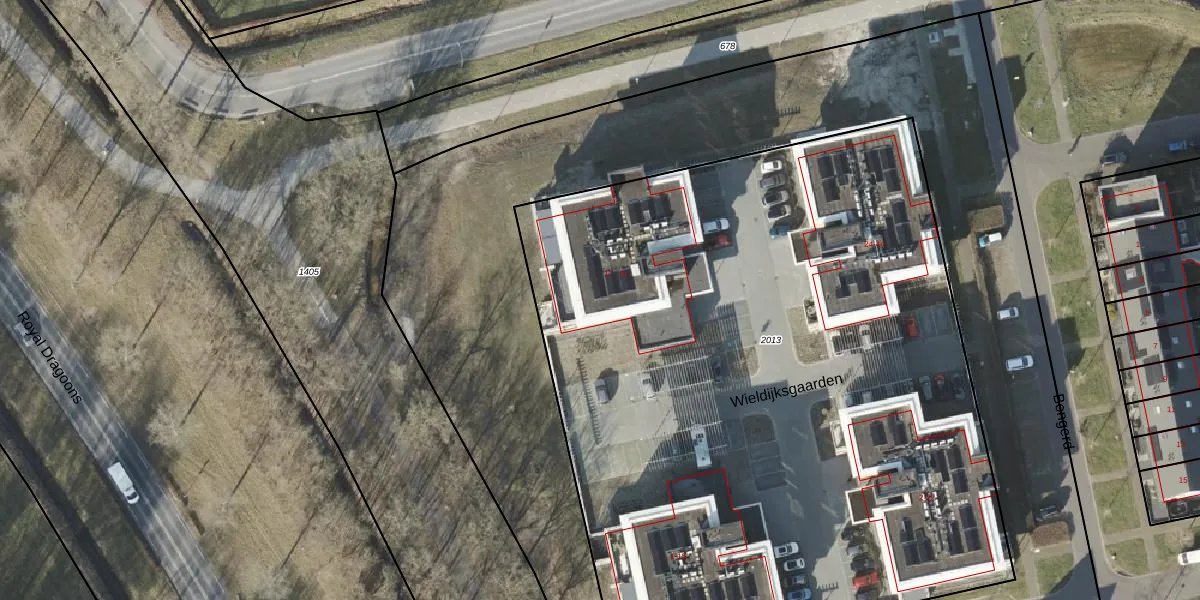 Het perceel waarop Wieldijksgaarden 23 staat heeft een oppervlakte van 5360 m². Dit is een zeer groot perceel. De perceeloppervlakte wordt geregistreerd door het Kadaster. Gedetailleerde informatie over de maten van dit perceel kunt u vinden in het rapport Kadastrale kaart met maatvoering van Wieldijksgaarden 23.